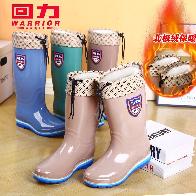 回力正品雨鞋女士韩版中筒加绒保暖加厚加棉高筒雨靴防水防滑胶鞋