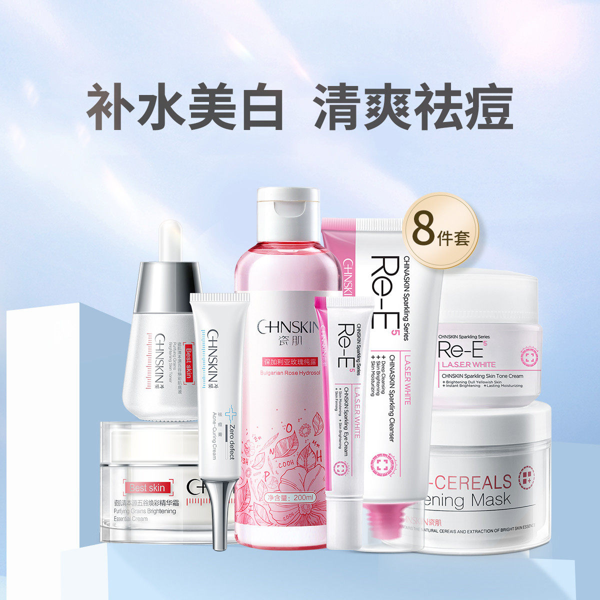 瓷肌美白补水保湿面膜套装玫瑰纯露爽肤水收缩毛孔精华霜祛斑霜