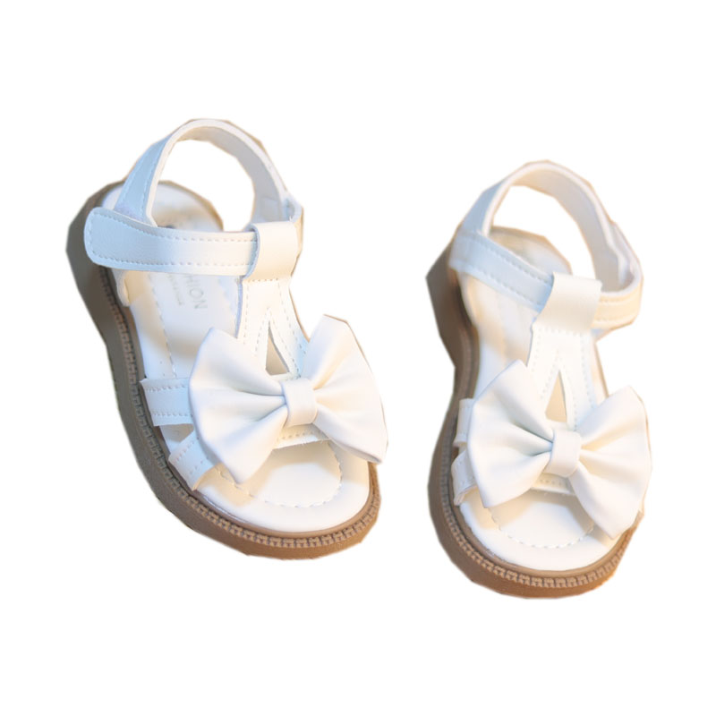 女童凉鞋 中大童软底鱼嘴平底沙滩鞋粉色蝴蝶结罗马鞋夏季公主鞋