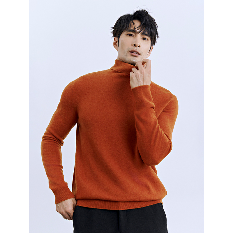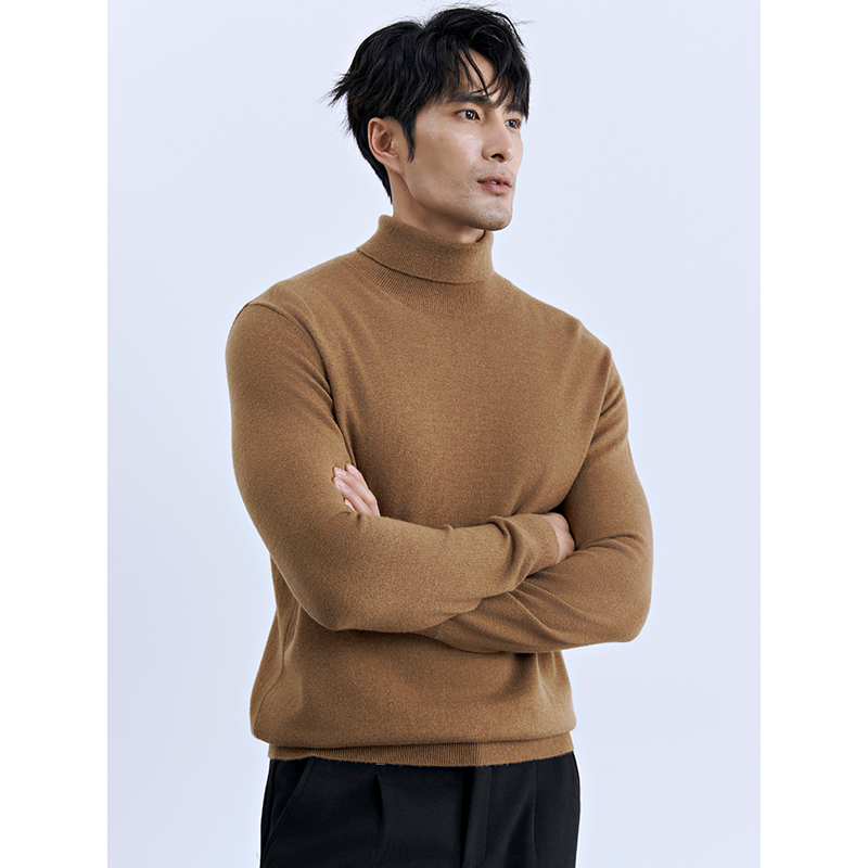 秋冬亲肤翻领精纺纯羊毛衫保暖打底针织衫男士休闲高领羊绒毛衣