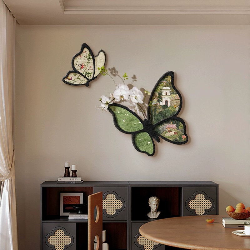 中古风蝴蝶餐厅装饰画2025新款双联创意壁饰客厅墙面挂件法式挂画