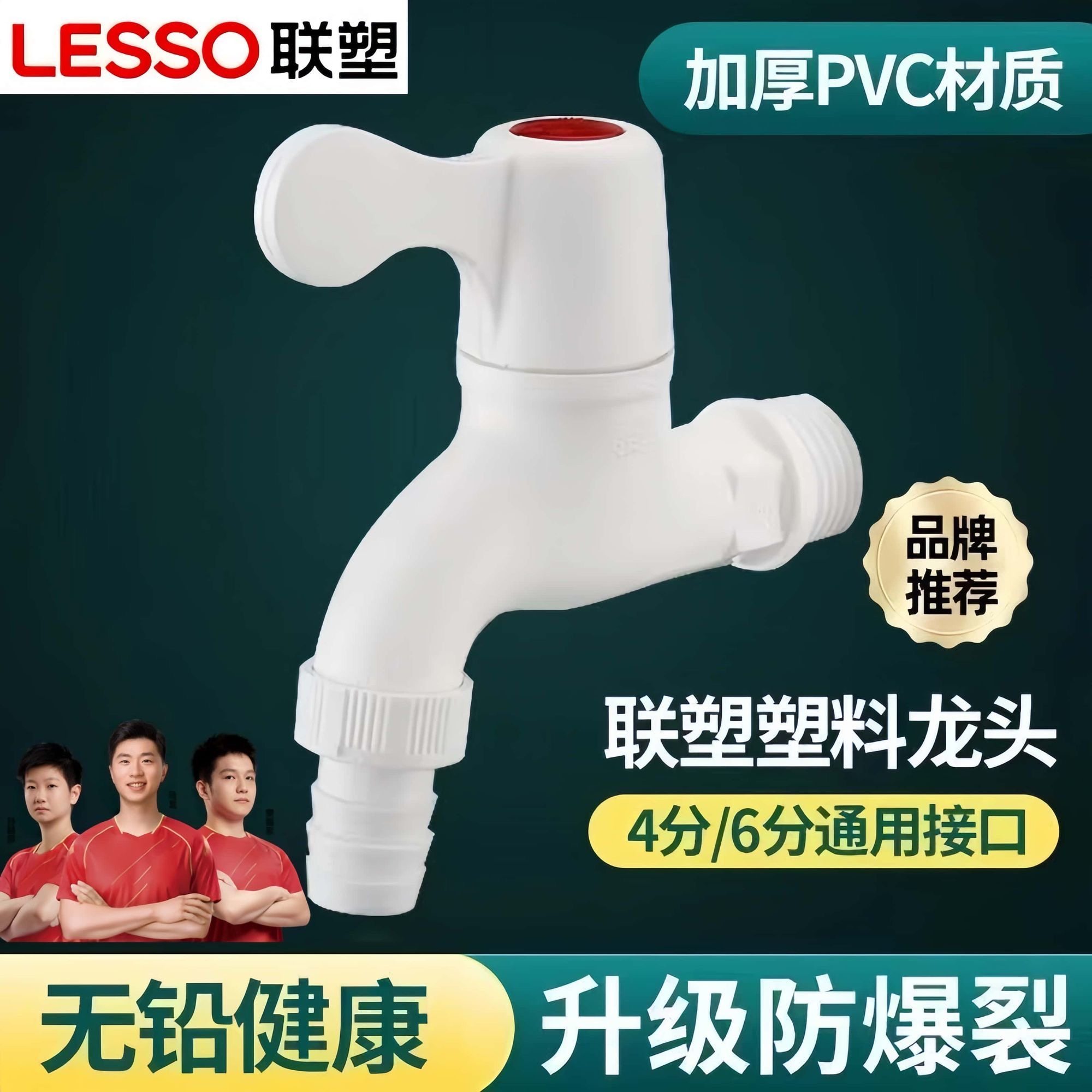 联塑水龙头塑料4分dn15免胶带简易安装PVC通用快开关一出二角阀