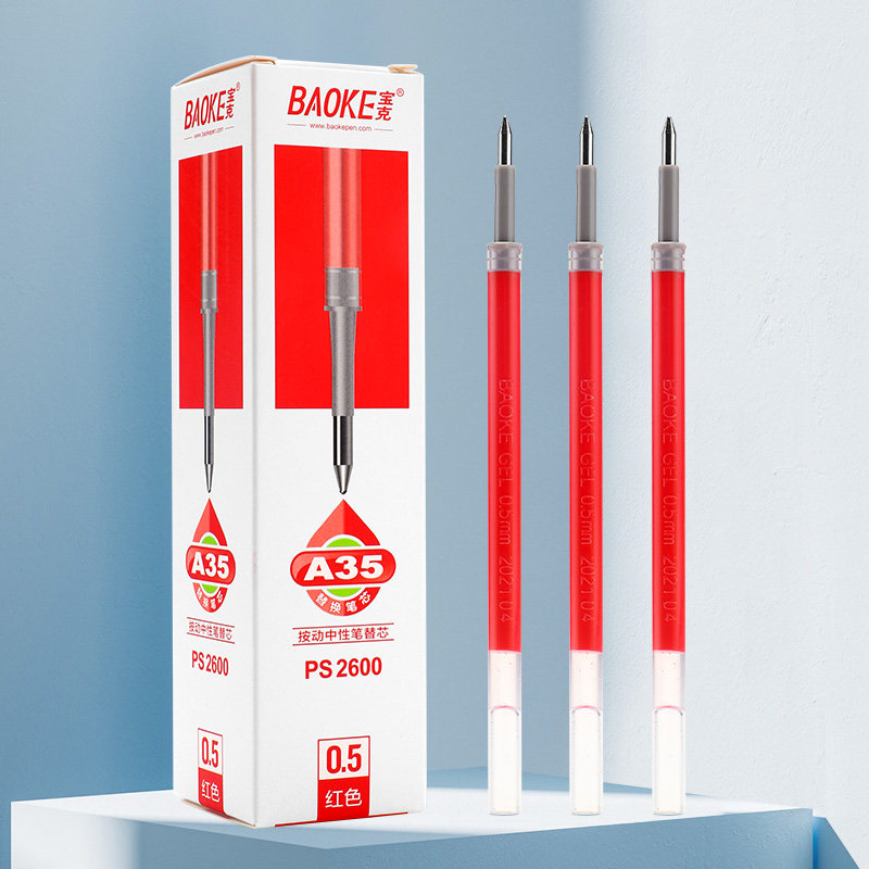 宝克A35按动蓝色替芯0.5mm学生碳素黑色0.7中性签字子弹头红笔芯
