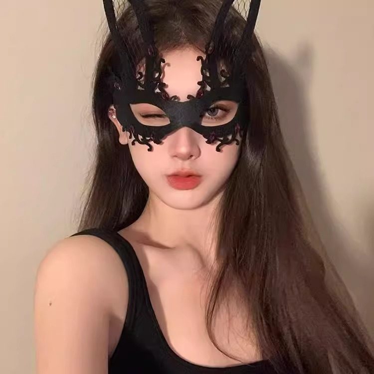 黑色花朵半脸面具女生眼罩蕾丝面罩cos晚会假面舞会装扮万圣节