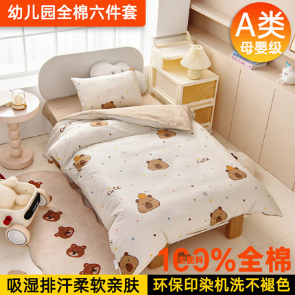 儿童卡通纯棉六件套幼儿园宝宝全棉被套床单三件套四季通用床品
