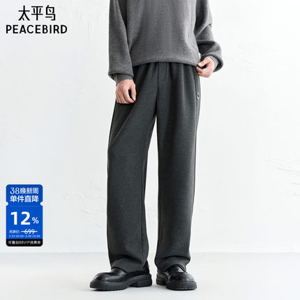 【商场同款】太平鸟男装 冬季深灰色保暖毛呢休闲裤男B1GF4B36