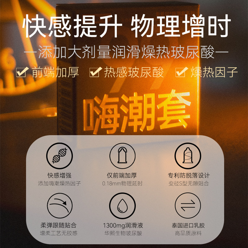 嗨潮99避孕套高潮降敏快感男用头部加厚延时持久装玻尿酸安全套tt