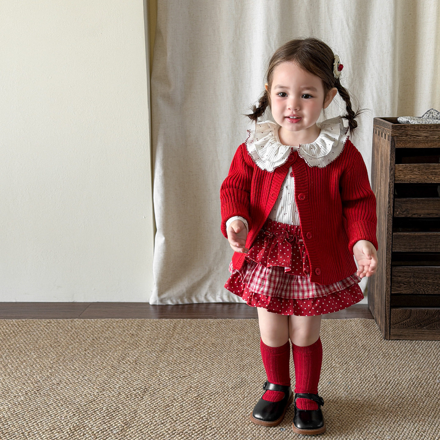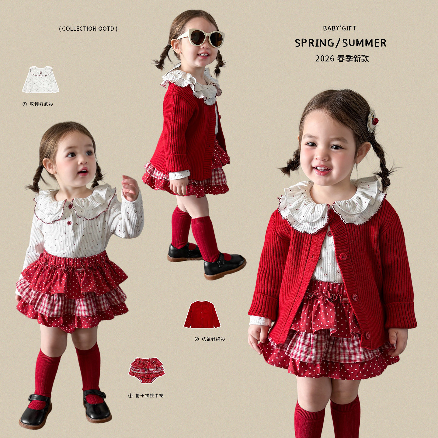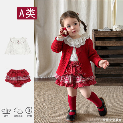 洋气女童针织外套裙子春装甜美宝宝公主套装春季周岁礼服新年过年
