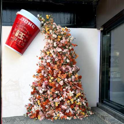 网红玫瑰瀑布花墙花海店面橱窗装饰假花仿真花拍照打卡背景花卉