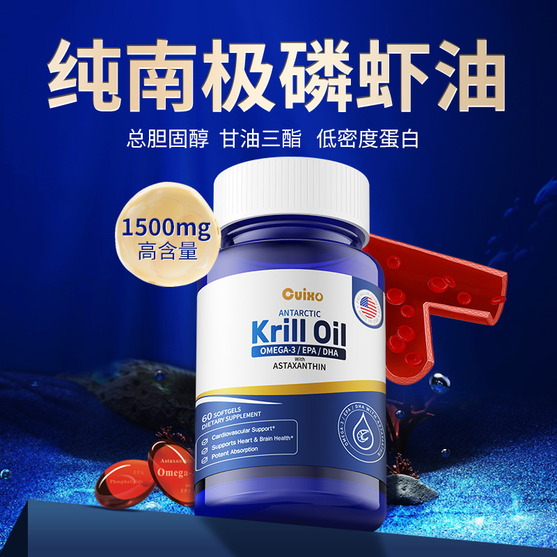 CUIXO美国进口南极磷虾油深海鱼油升级omega3磷脂软胶囊中老年