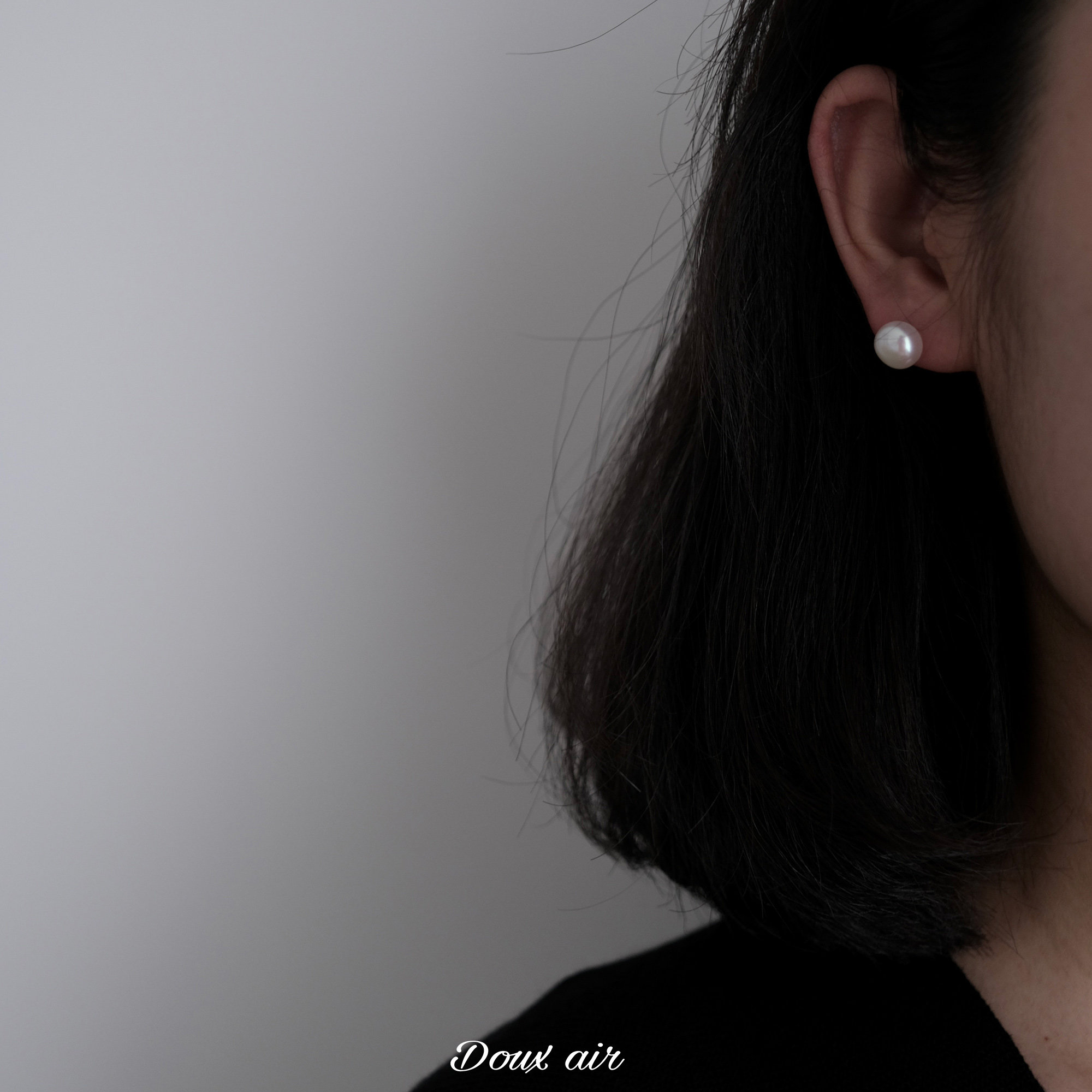 DouxAir天然淡水珍珠耳钉女s925纯银9mm耳饰小众简约气质耳环小巧