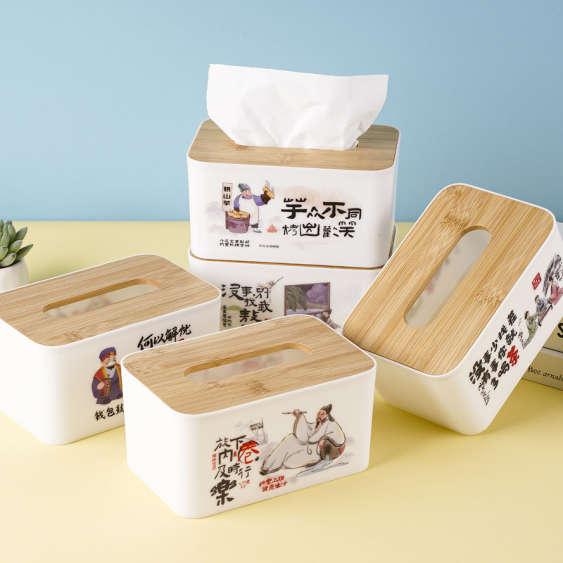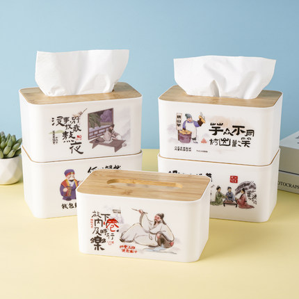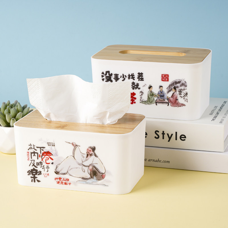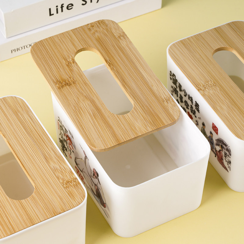 竹木纸巾盒创意中国风抽纸盒塑料餐巾纸收纳盒酒店饭店餐厅家商用