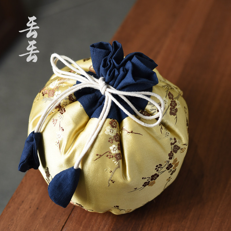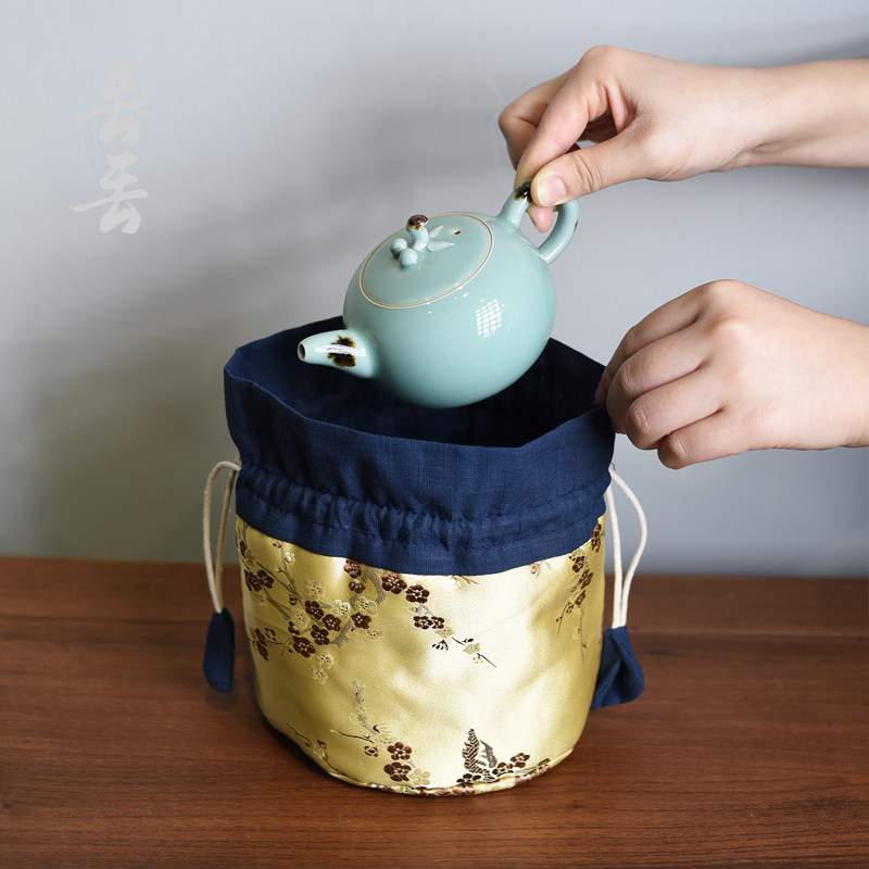 宫廷风加厚织锦缎茶壶收纳布袋茶具旅行便携主人杯布包抽绳束口袋