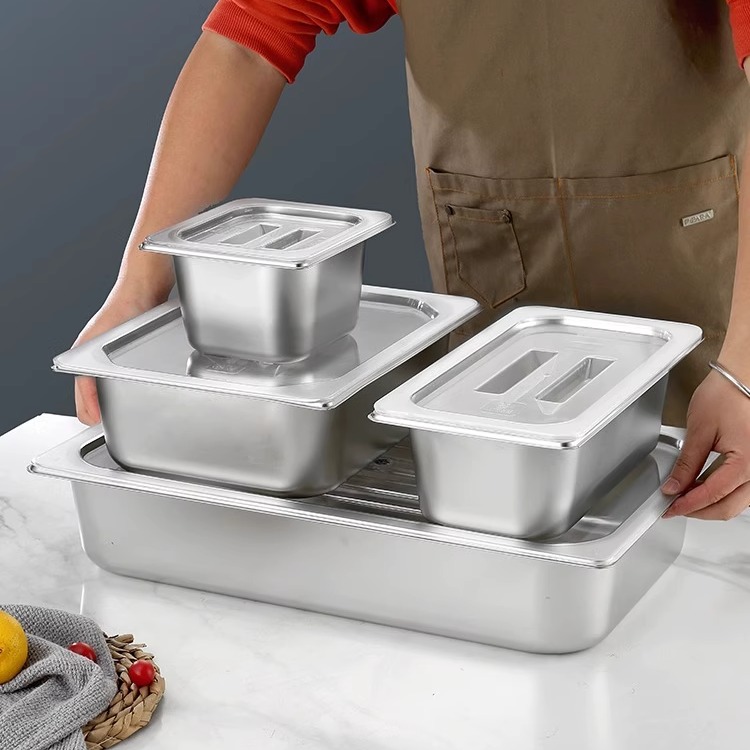 不锈钢长方形份数盆带透明盖自助餐麻辣烫商用选菜盆奶茶店小料盒
