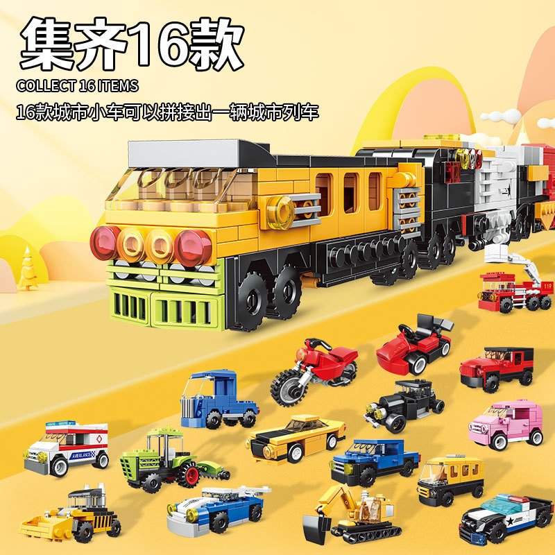 城市汽车工程车沃马积木玩具益智拼装拼图小颗粒6男8儿童12岁礼物
