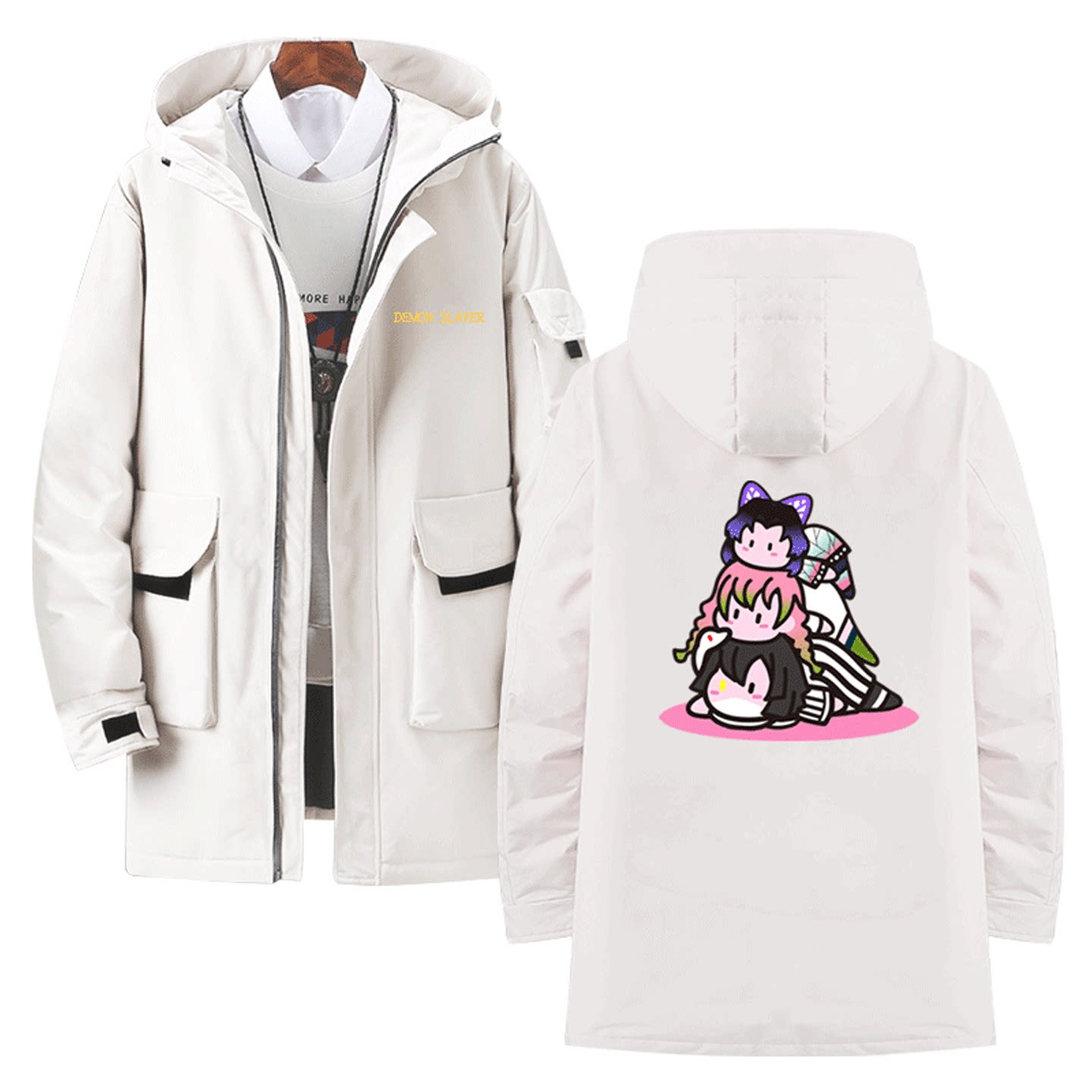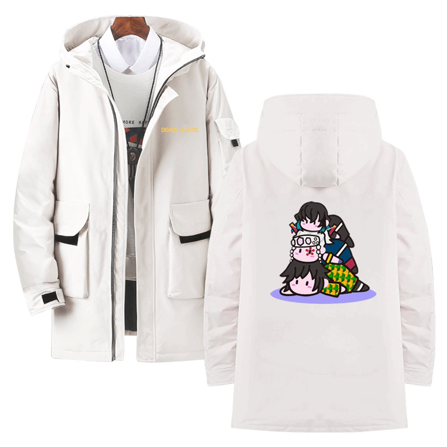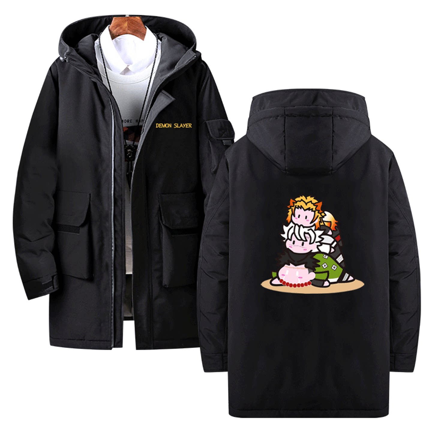 男女情侣可定制中长款羽绒服鬼灭之刃周边炭治郎善逸Q版卡通印花