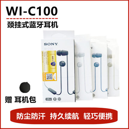 Sony/索尼 WI-C100 无线蓝牙耳机入耳式手机耳机 颈挂式运动防水