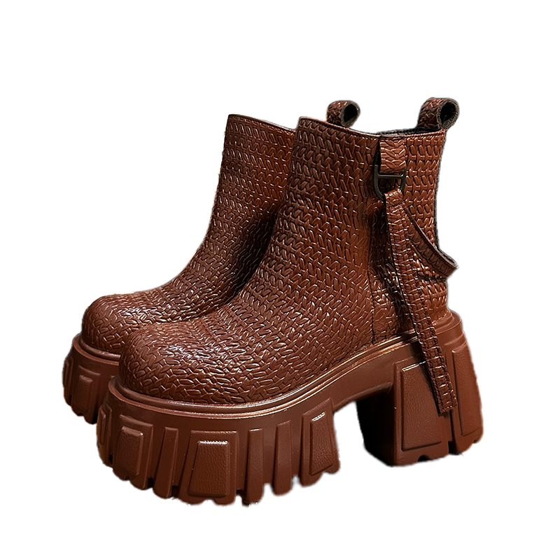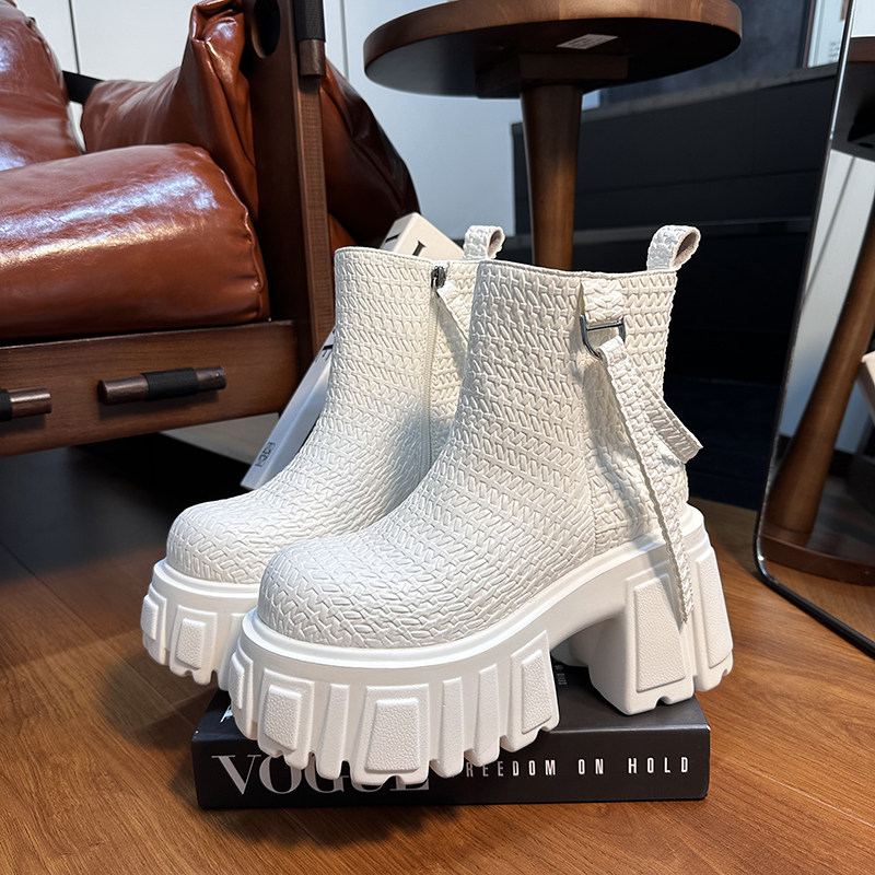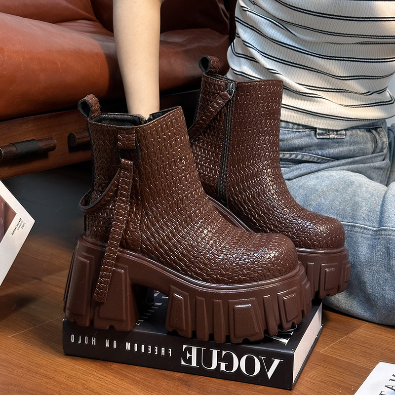 10cm高跟马丁靴女2025新款英伦风厚底粗跟短靴小个子增高切尔西靴