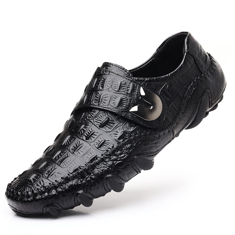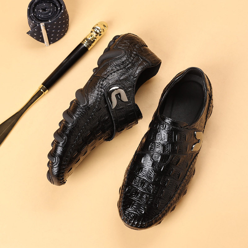 跨境大码男鞋2025新款真皮牛皮鳄鱼纹豆豆鞋男士高档皮鞋