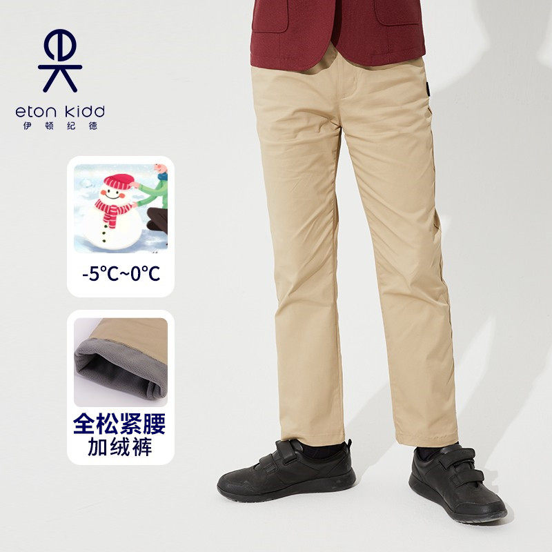 伊顿纪德校服冬季卡其色双层加绒加厚长裤男女童保暖休闲裤16K073