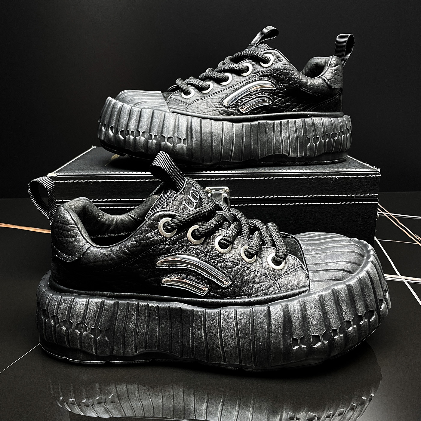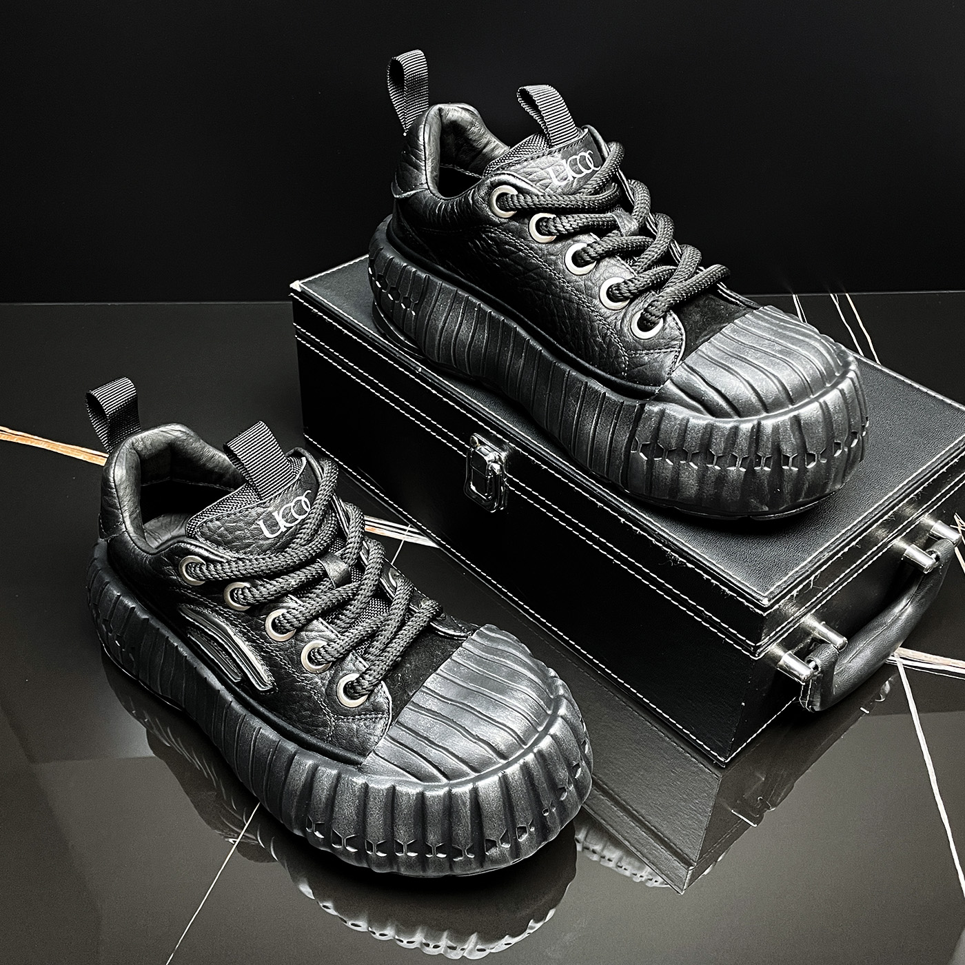 头层牛皮男鞋2025秋季新款内增高厚底大头板鞋黑武士男士休闲鞋子