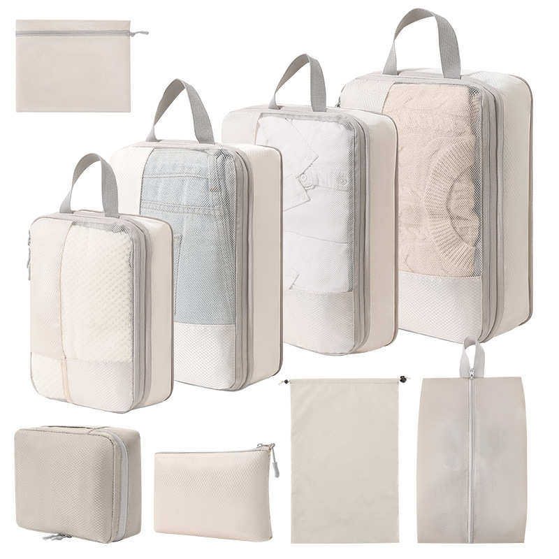 网面可视压缩旅行收纳袋出差旅游衣物分类整理收纳洗漱包套装