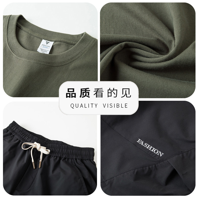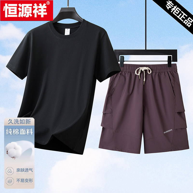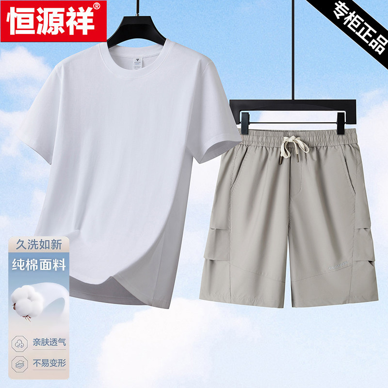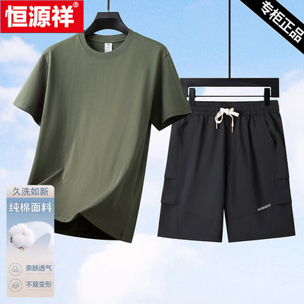 恒源祥纯棉运动套装男夏季新款短袖t恤短裤爸爸装中老年休闲男装