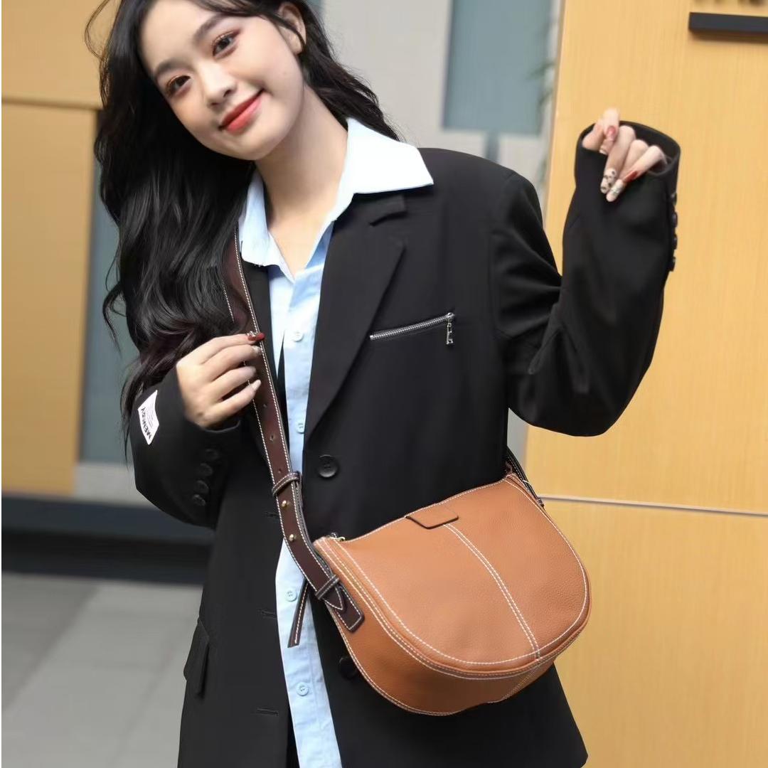 真皮马鞍包女士简约休闲斜挎包头层软牛皮复古单肩包韩版小托特包