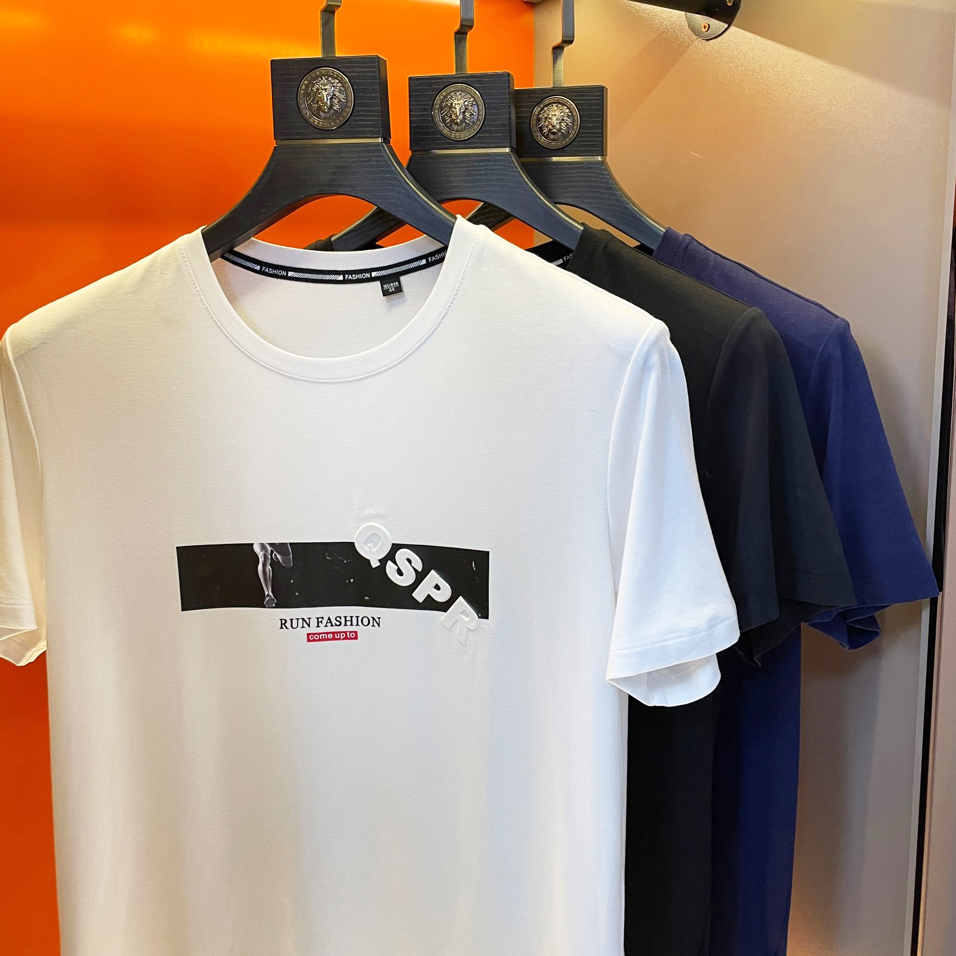 莫代尔!男士短袖t恤衫 夏季薄款黑色白色圆领t恤 透气吸汗棉T恤