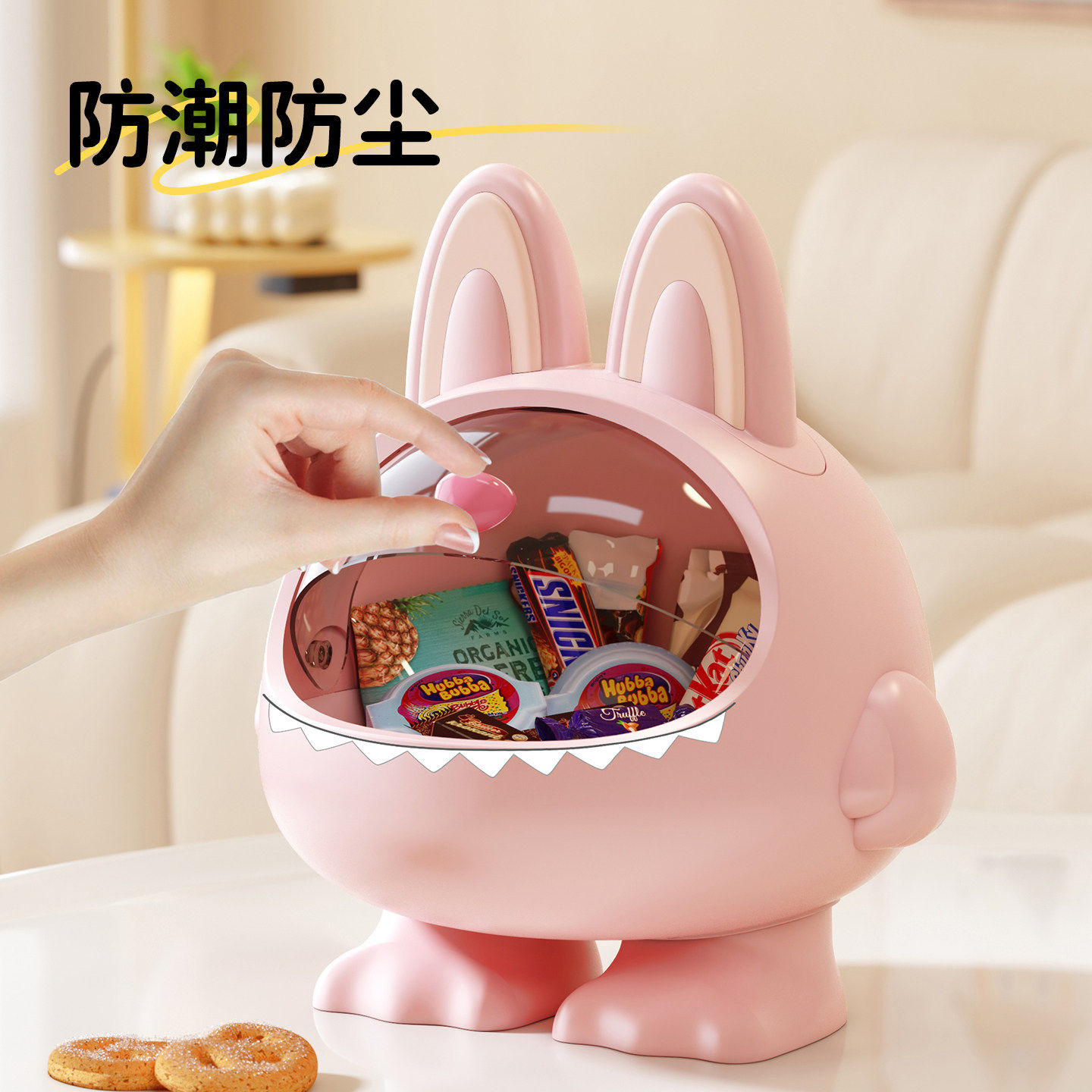 可爱小怪兽收纳盒杂物发饰迷你玩具盲盒袋展示架桌面罐子创意摆件