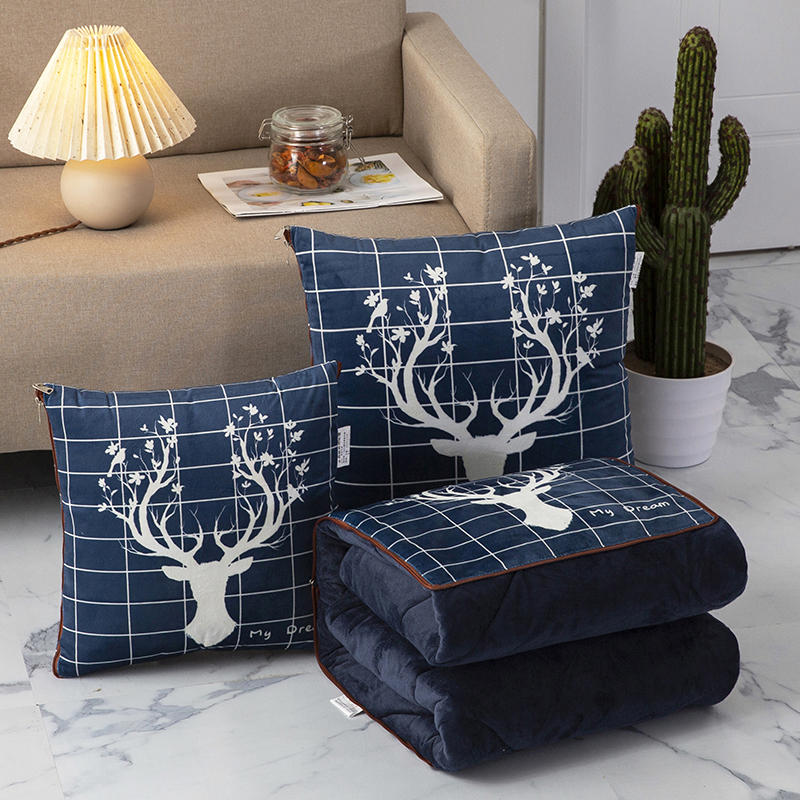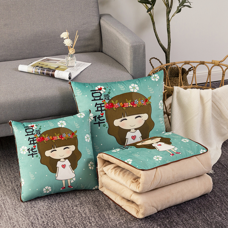 加厚抱枕被子两用珊瑚绒汽车w靠垫被办公室多功能可折叠午休空调