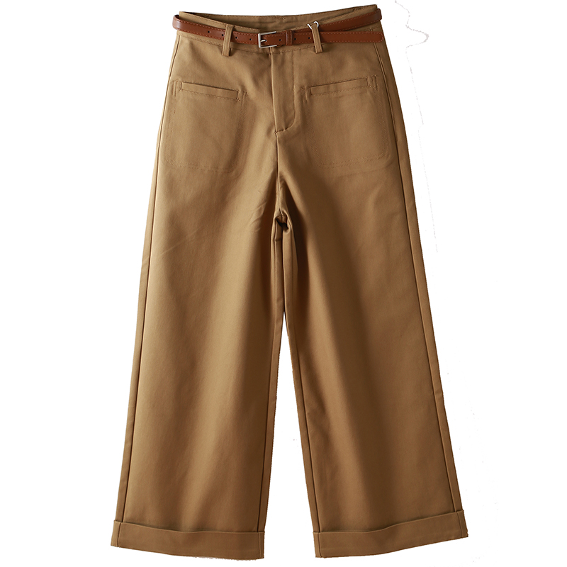 慕思雨春秋新款高腰宽松直筒休闲裤女窄版小个子显瘦九分阔腿裤