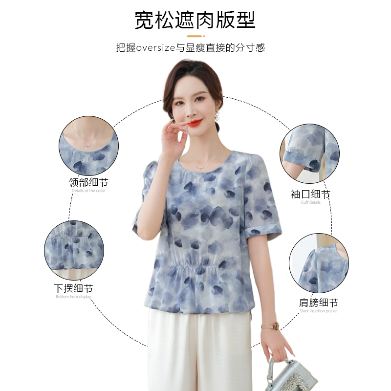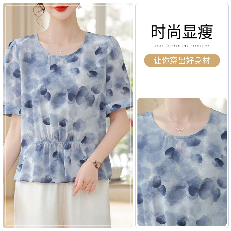 2025新款妈妈夏季仿真丝上衣