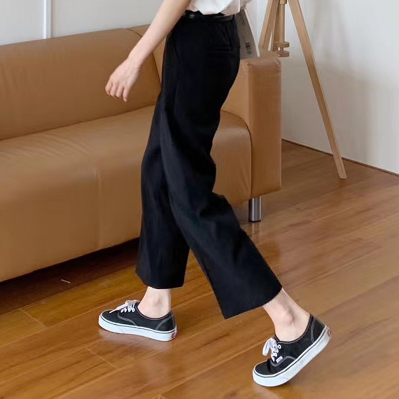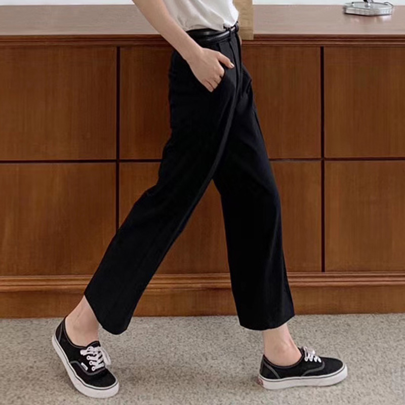 百思朵港风黑色西装裤女九分直筒裤宽松垂坠感烟管裤阔腿裤休闲裤