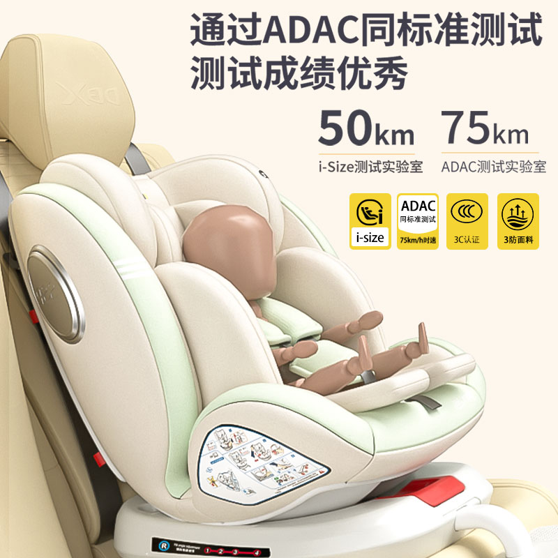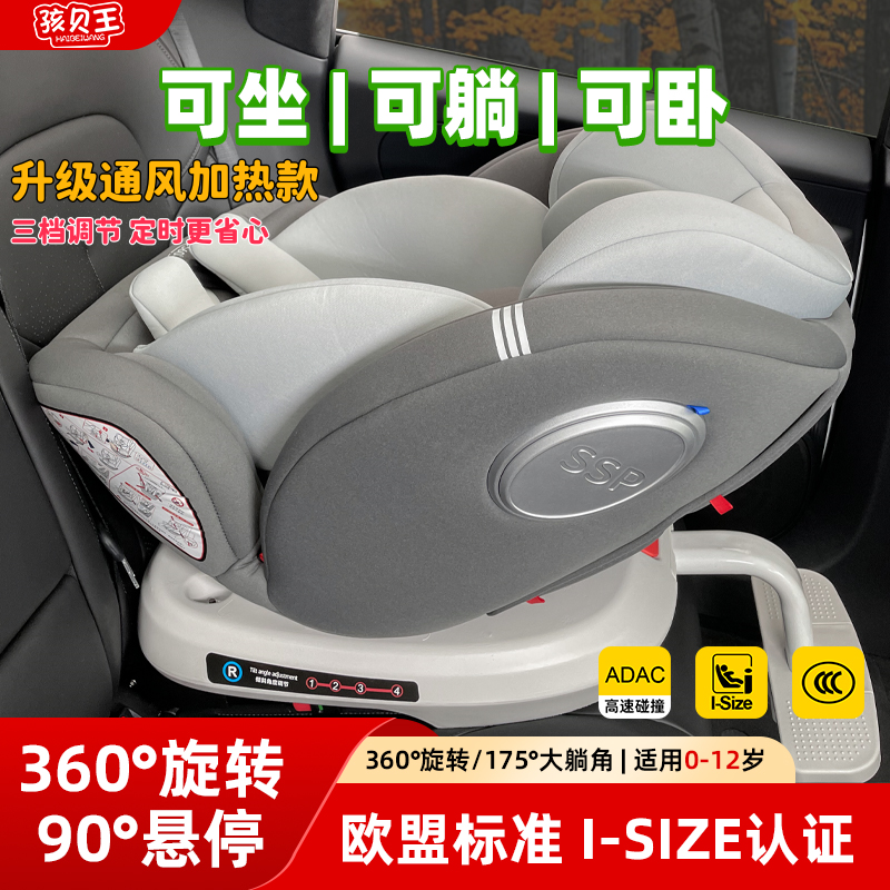 孩贝王儿童安全座椅通风加热婴儿宝宝车载360旋转坐椅0-4岁可坐躺