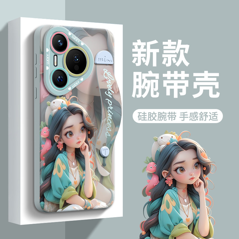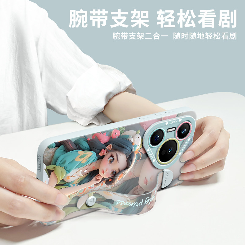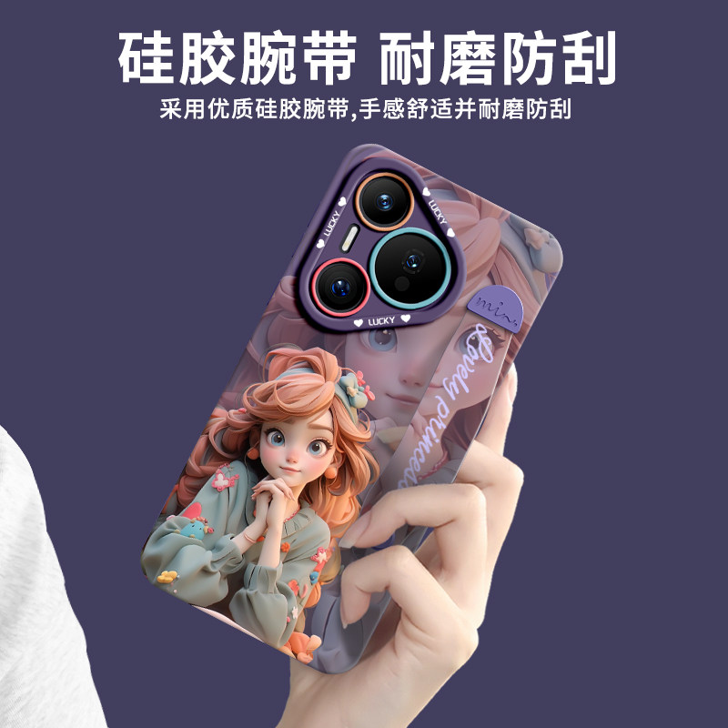 适用华为pura80pro手机壳70保护p80套p60的ultra新款p50外壳p40后p30镜头p70全包+十女por硅胶腕带带挂绳防摔