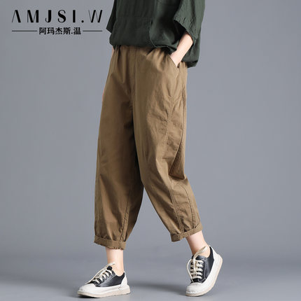 纯棉哈伦裤女春夏新款九分宽松显瘦休闲萝卜裤高腰文艺阔腿老爹裤