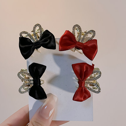 红色兔耳朵蝴蝶结发夹侧边刘海小抓夹女2024新款发卡新年过年头饰