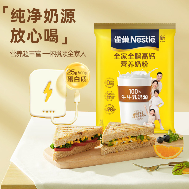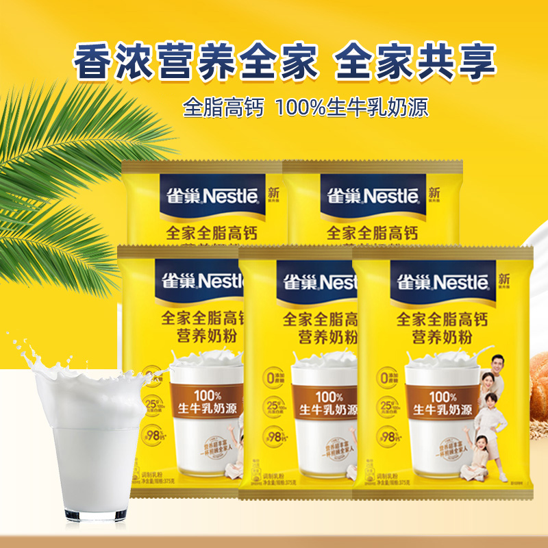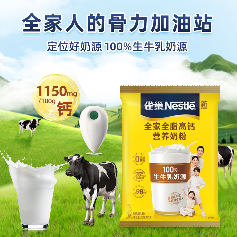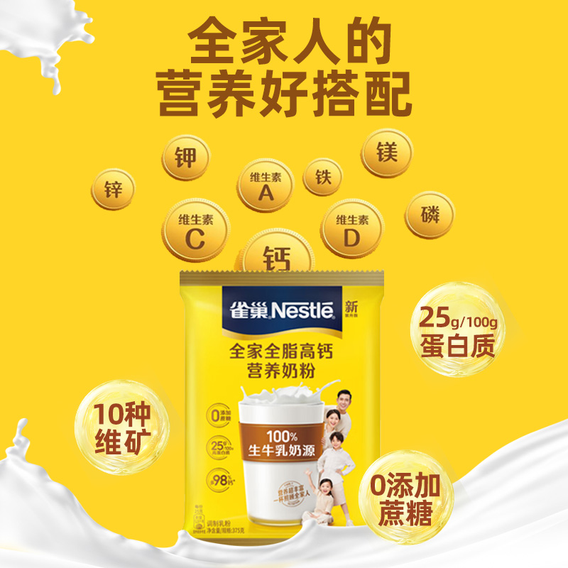 雀巢怡运全脂高钙高蛋白奶粉375g袋装牛奶全家营养早晚餐官方正品