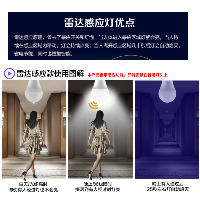 LED雷达人体感应灯泡家用螺口超亮节能灯光源楼梯楼道过道专用灯
