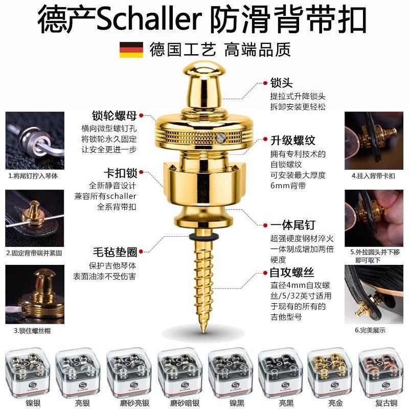 德产schaller沙勒电吉他防滑背带扣民谣木吉他贝斯防脱落琴钉带锁