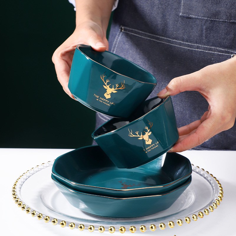 日式碗碟套装家用创意北欧陶瓷碗网红餐具套装碗盘碗筷盘子组合
