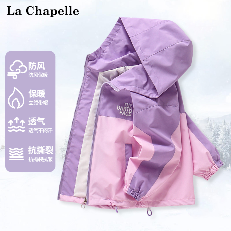 拉夏贝尔女童春秋外套2025新款儿童洋气连帽上衣女大童冲锋衣秋装