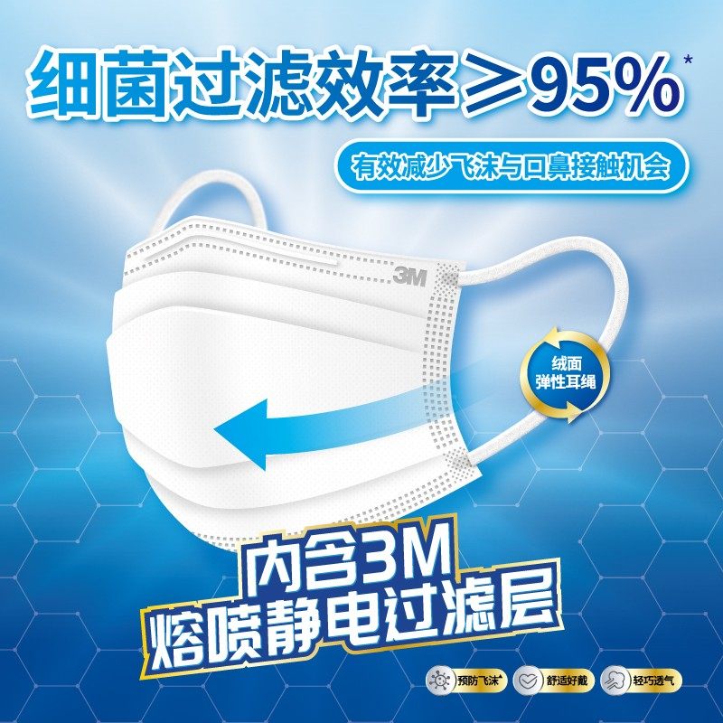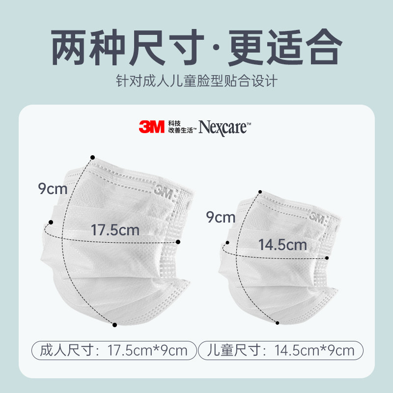 3M耐适康舒适口罩防护细菌过滤效率≥95%成人一次性轻薄透气口罩