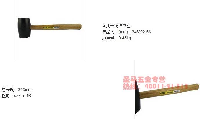 美国史丹利 木柄橡胶锤 橡胶安装锤 胶锤 橡皮锤 地板软锤