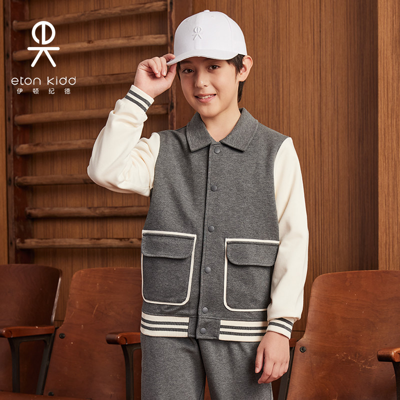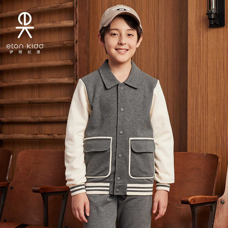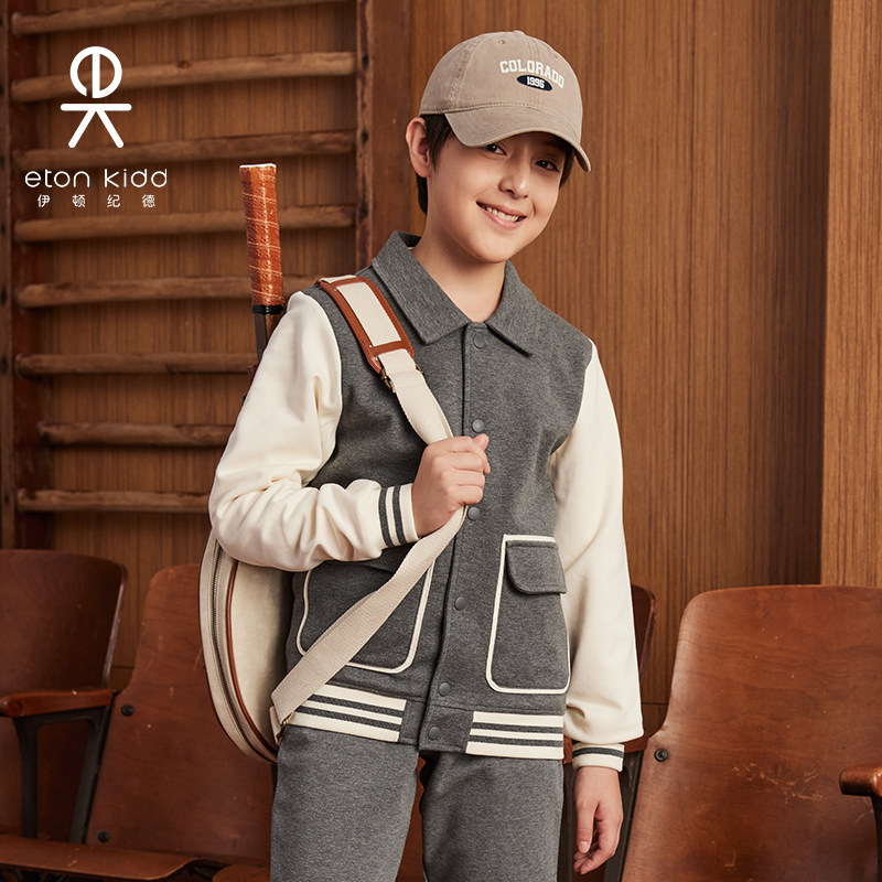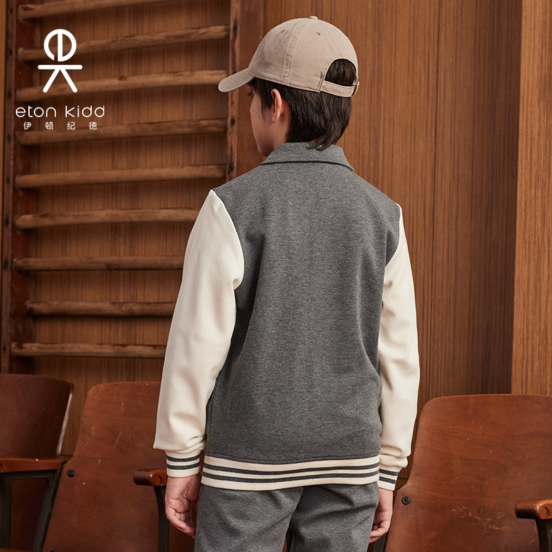 伊顿纪德儿童外套男女童空气层棉毛布撞色袖翻领运动上装24Y010S