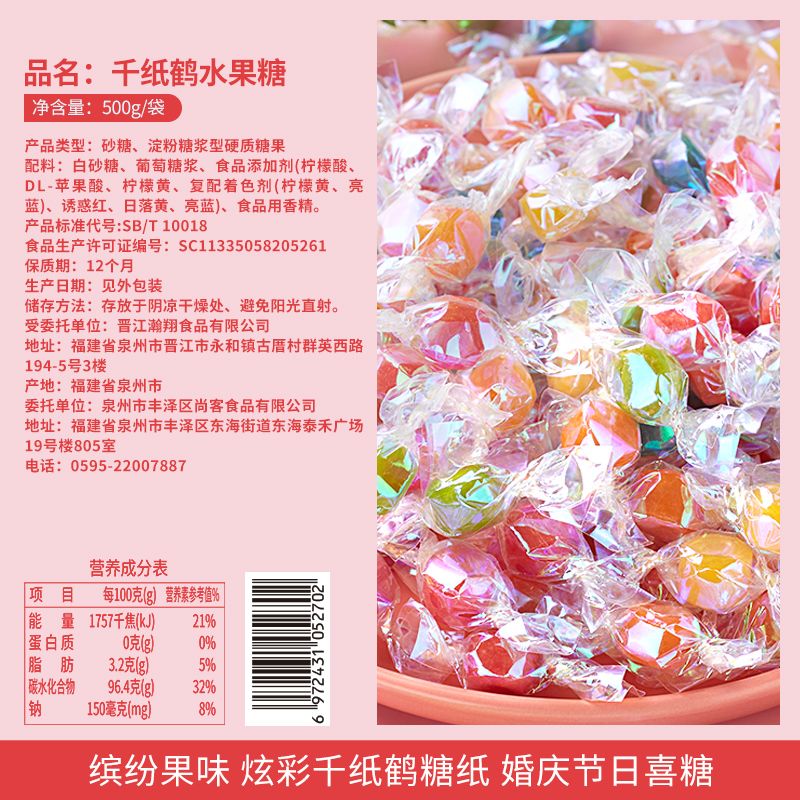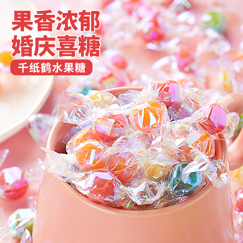 七彩纸糖果千纸鹤水果味喜糖袋装网红糖果小零食散装招待硬糖批发
