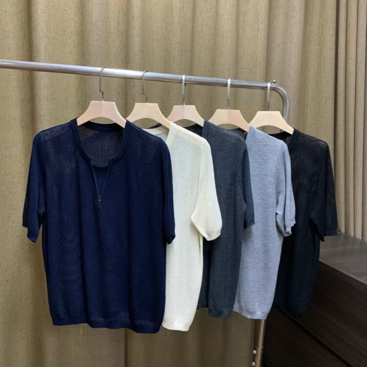 丽的城8673多色半拉链圆领短袖针织衫