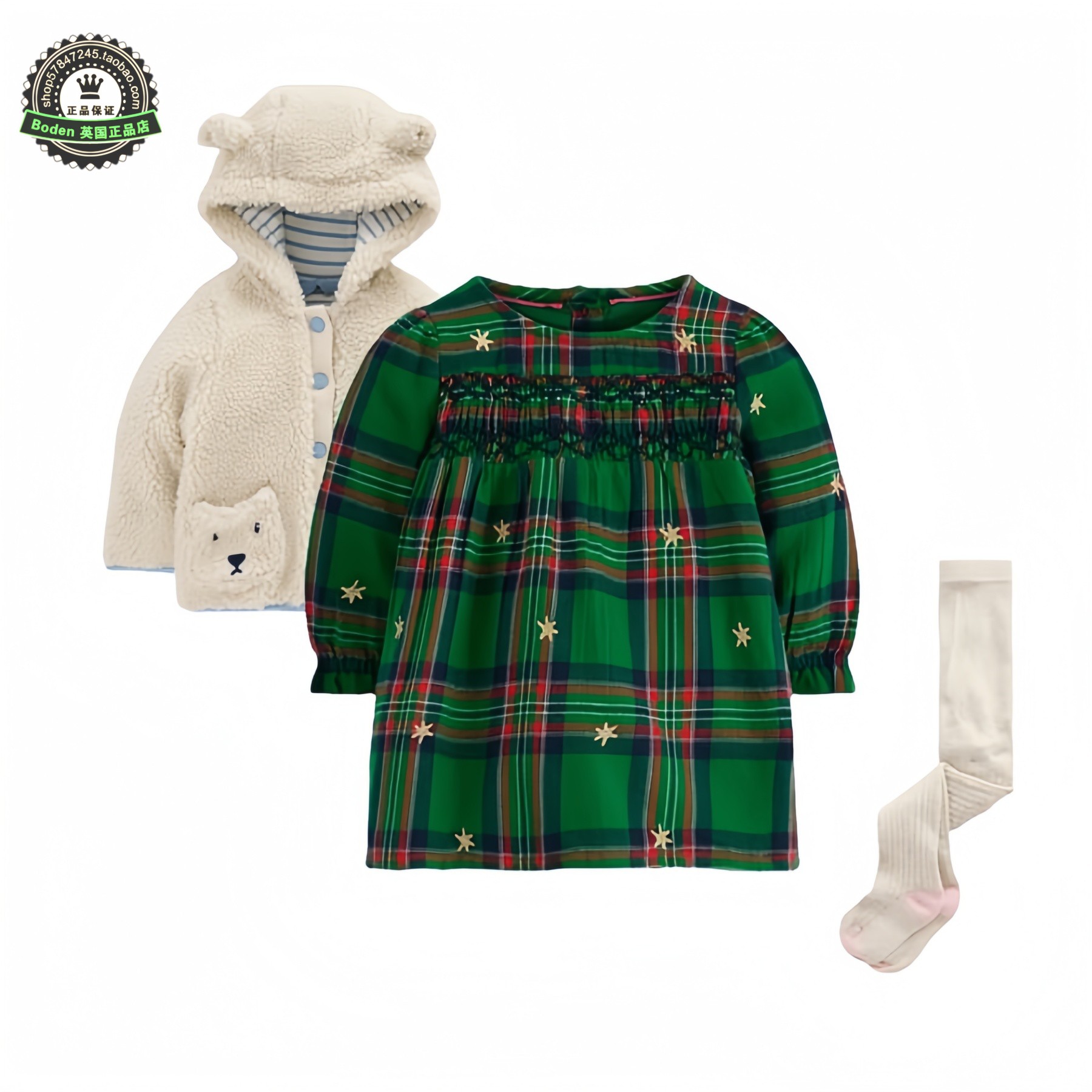 代购MiniBoden女宝宝连衣裙 25秋季婴儿磨毛纯棉长袖儿童裙 0-3岁