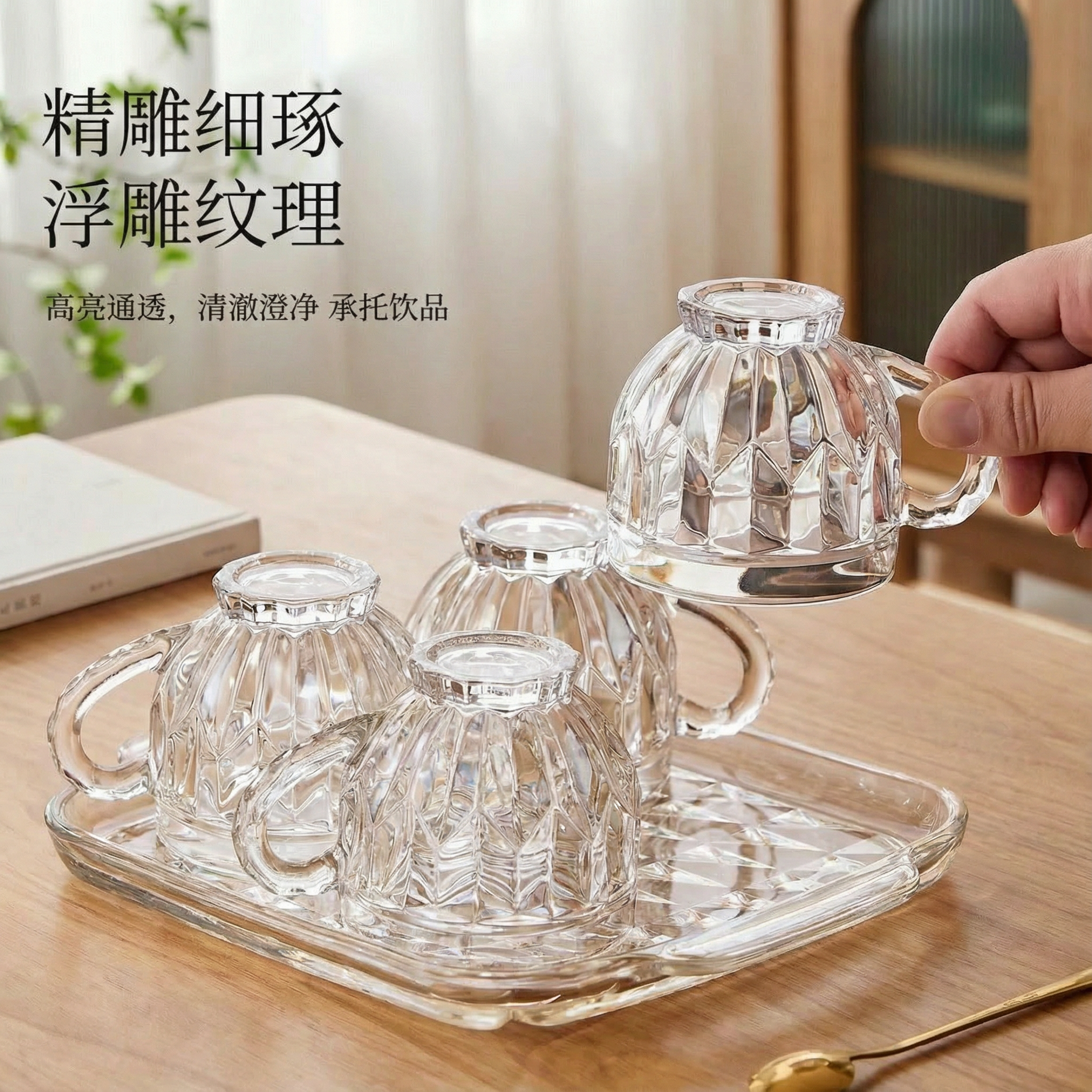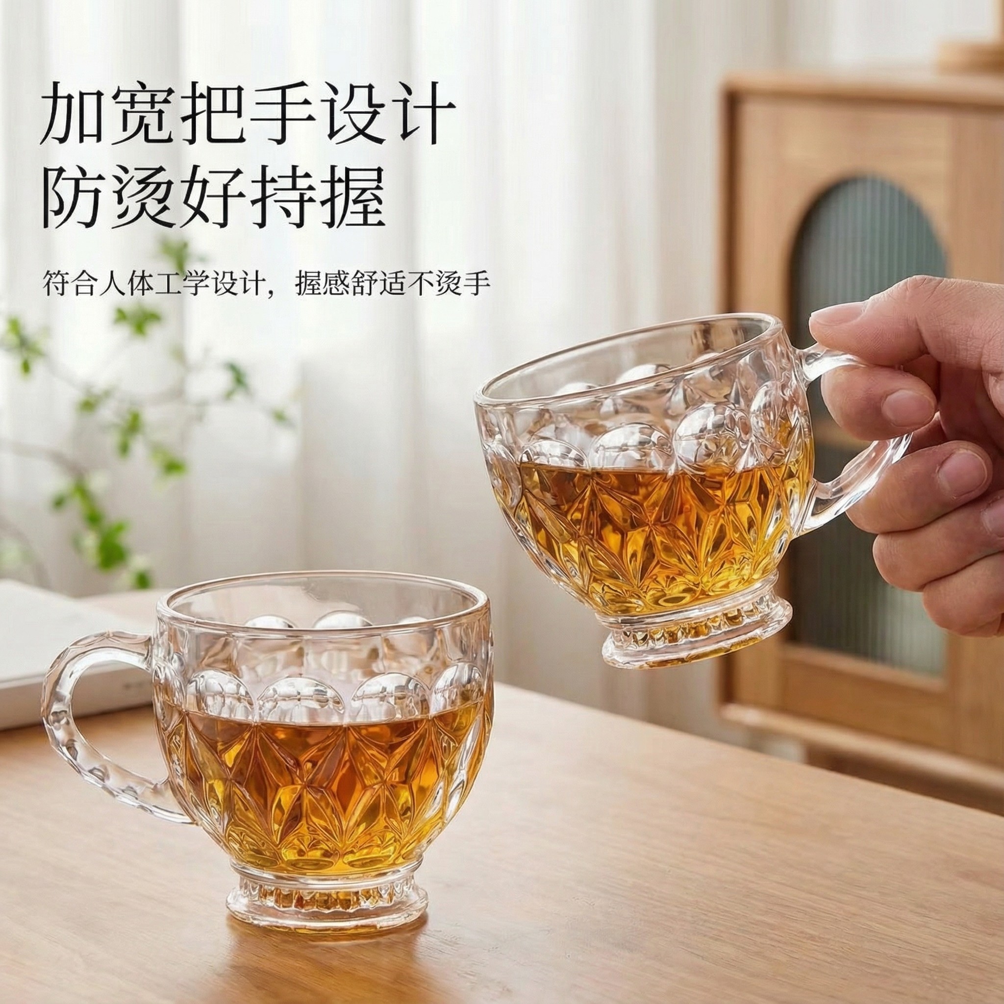 杯子套装家用客厅轻奢高颜值待客玻璃杯耐高温茶杯带把手水具套装